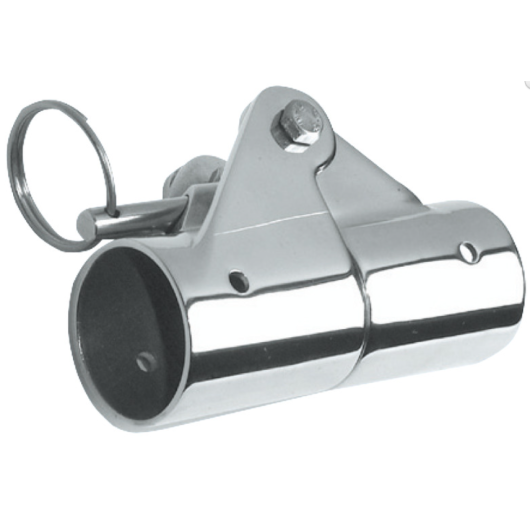 L’articulation externe est une jonction pour deux tubes de même diamètre de Bimini & taud de soleil, qui permet d’articuler la structure à 90° à bord du bateau à moteur ou voilier.